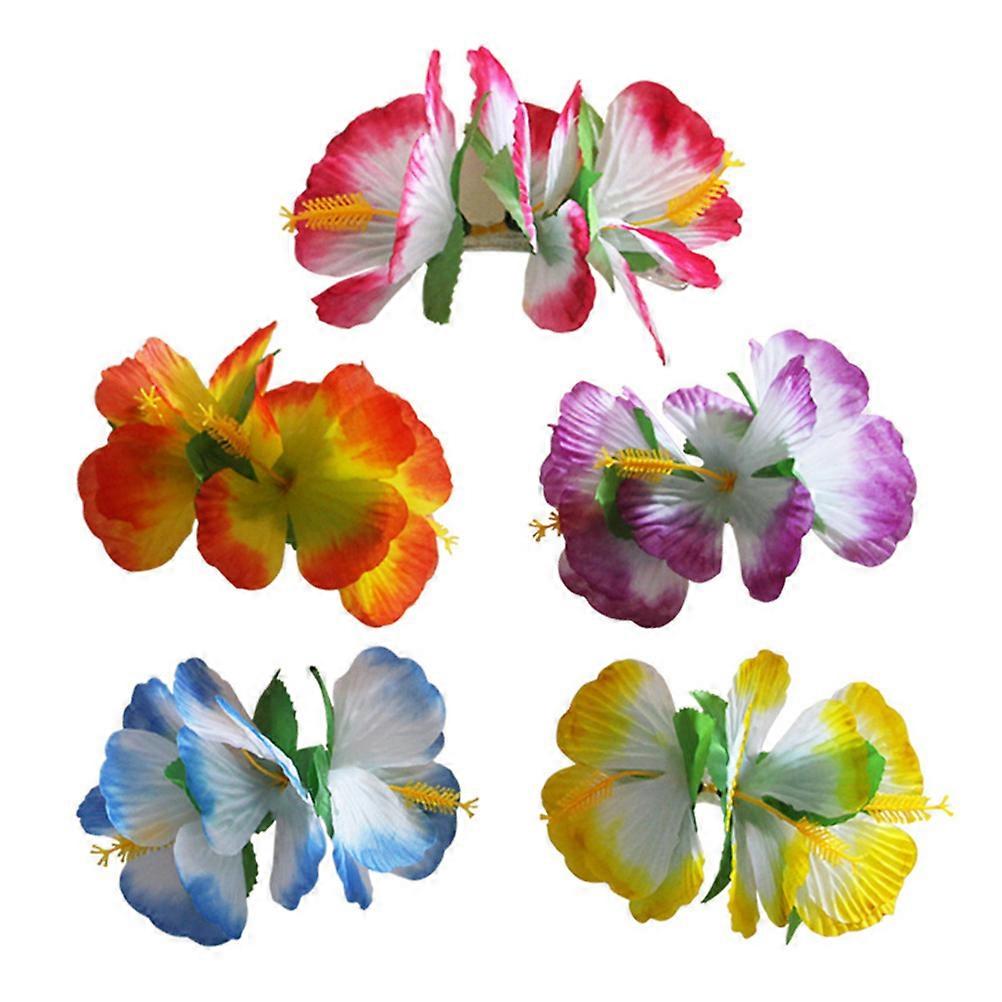 Beach Party Hair Clip Assorted Color Plastic And Cloth Material Hawaiian Floral Hair Claw Easy To Use 12Pcs