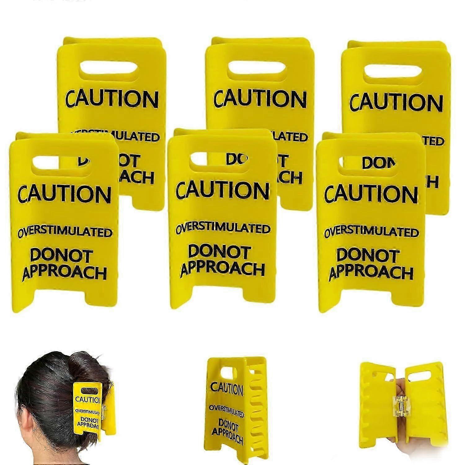 Caution Overstimulated Sign Hair Claw Clip, Humorous Caution Sign Hair Clip, Funny Yellow Hairs Clips for Thick, Bold Gift for Coworkers and Friends