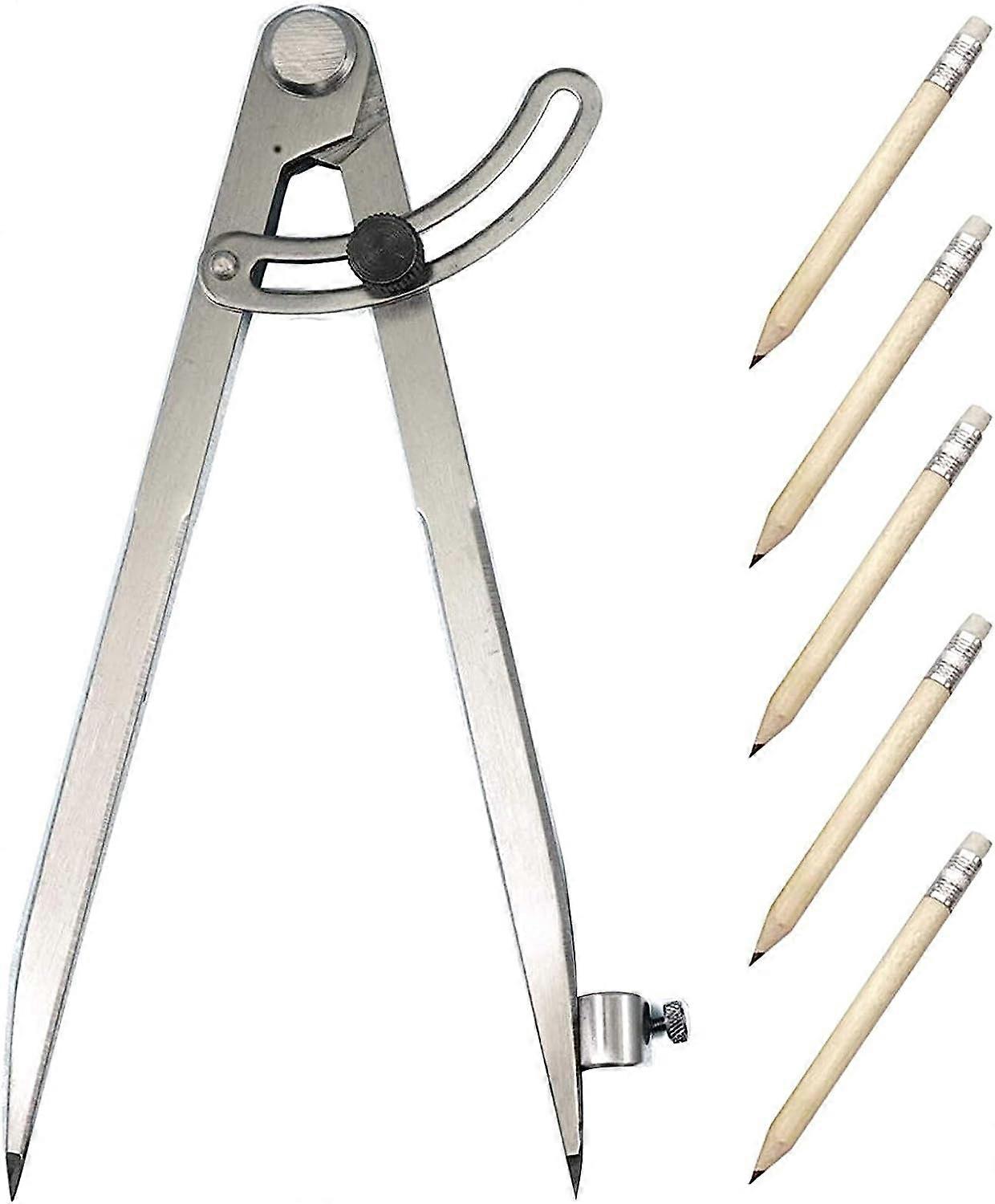 Professional Steel Measuring Calipers Carbon Point Compass with 5pcs Pencils Precision Caliper Setting for Carpenter Joiner Industrial Marking Gauge L