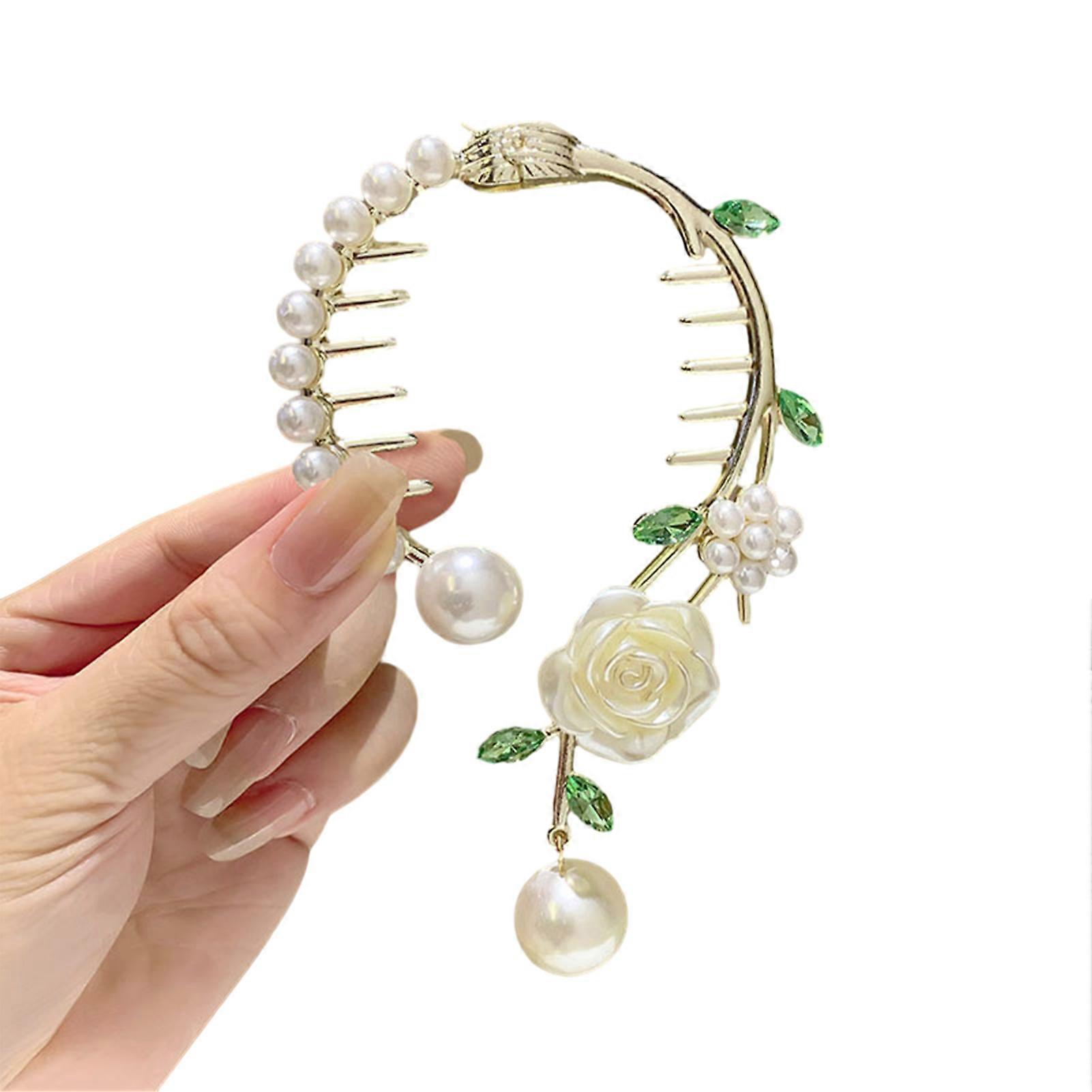 High Ponytail Hair Claw Clip with Tassel Flower Leaf Decor Faux Pearl Shark Hair Clip for Girls Women Thick Long Hair