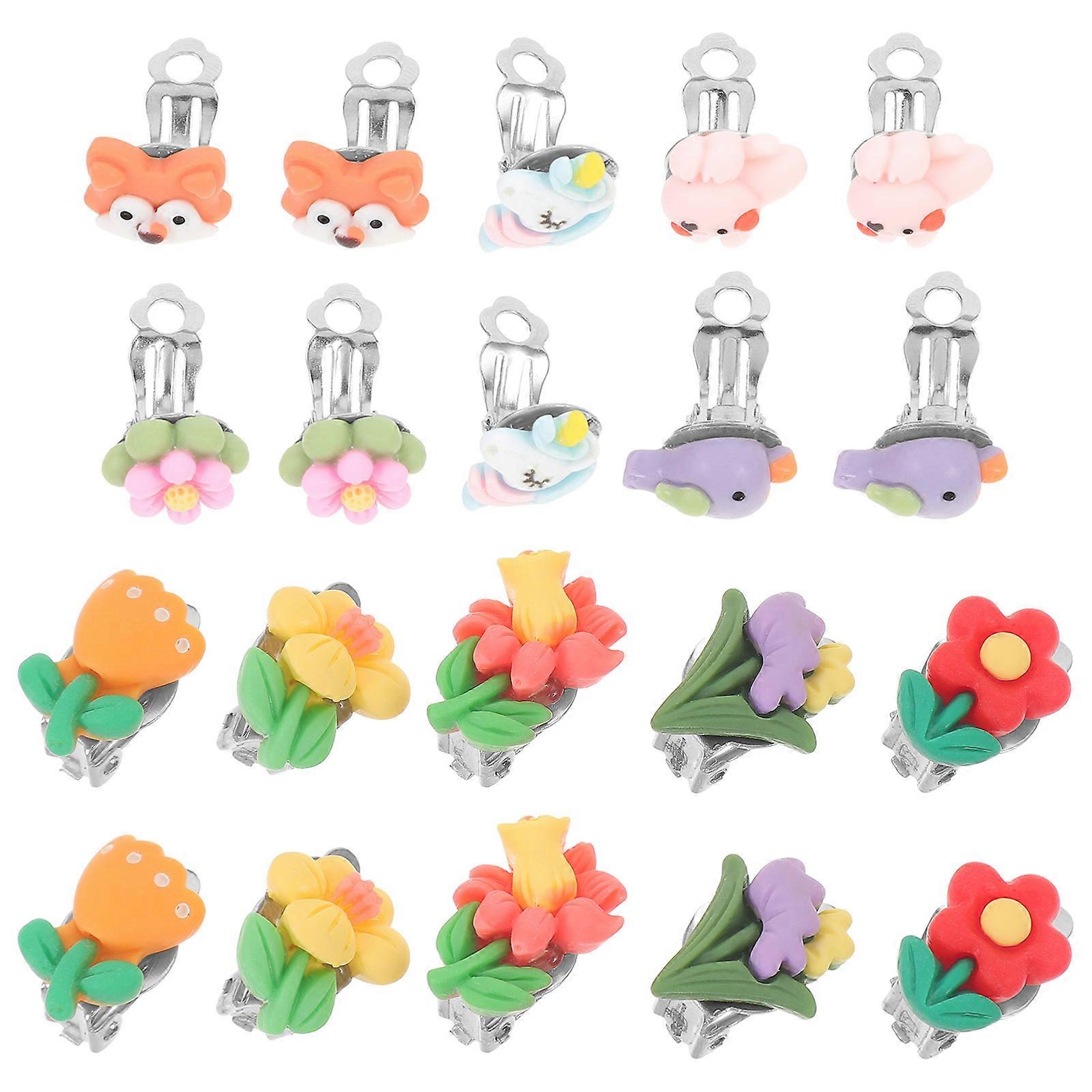 Children Clip On Earrings Flower Design Cute Ear Clips For Girls Everyday Wear Assorted Color 10 Pairs
