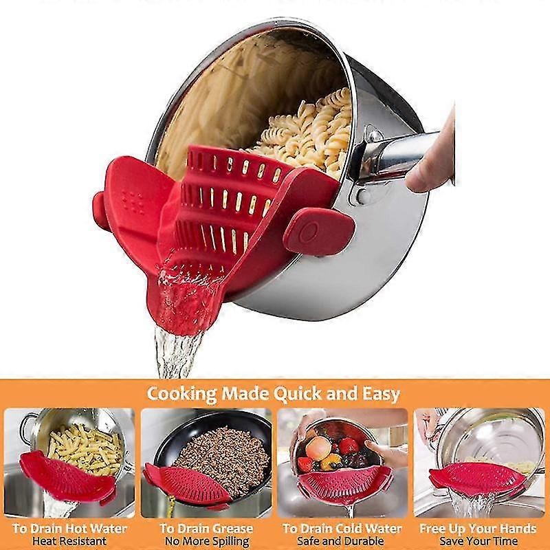 Silicone Adjustable Clip On Strainer Food Grade Heat Resistant Pot Drain Pan Liquid Drainer Kitchen Colander