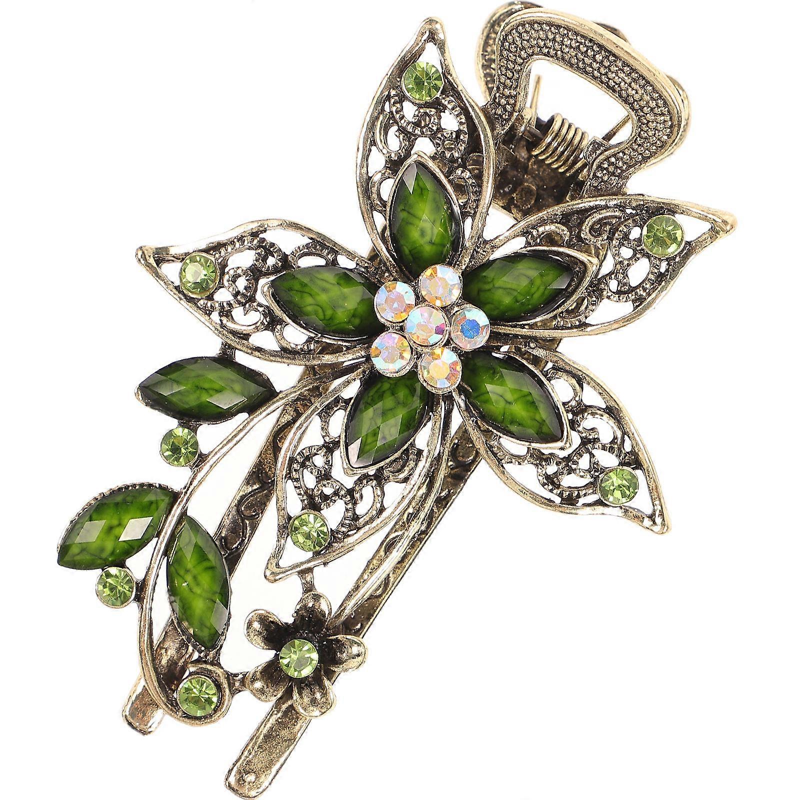Floral Green Hair Clip with Crystal for Vintage Hair Decoration Lightweight and Portable 1 Piece