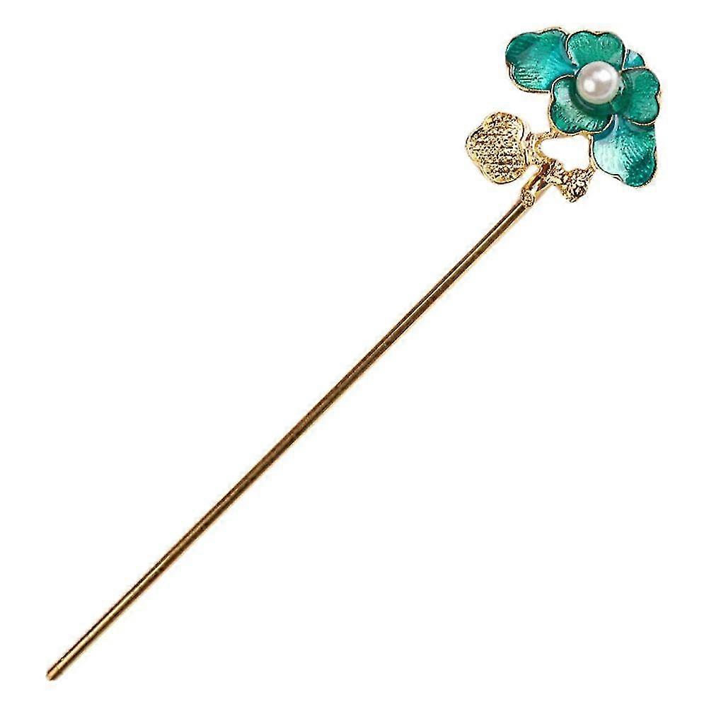 Exquisite Blue and Gold Chinoiserie Hair Clip - Vintage Alloy Hair Pin for Chinese Style Performances & Gifts