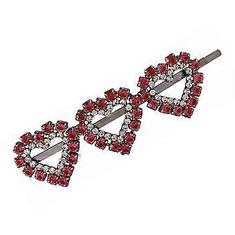 קליפ שיער ריינסטון בצורת לב ורוד לקישוט חומר סגסוגת גודל אחד מתאים לכולם