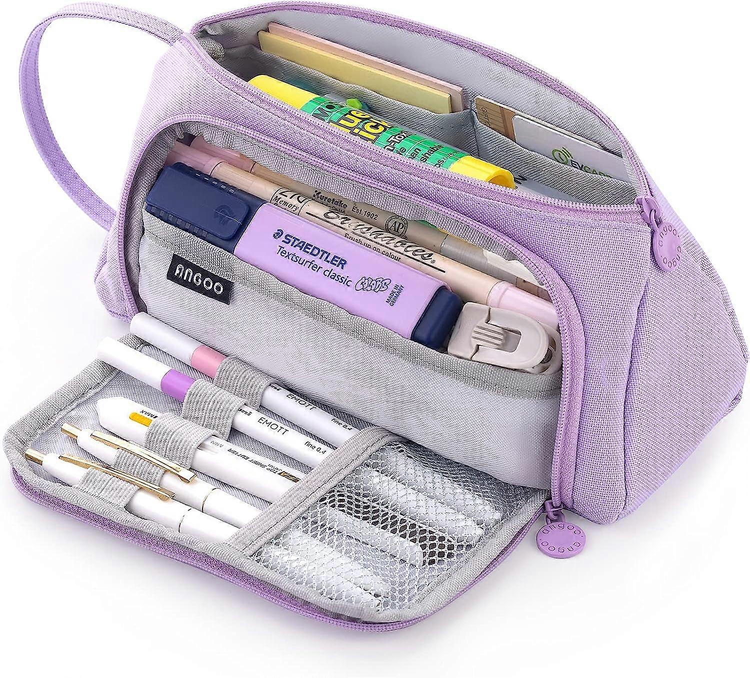Pencil Case Handheld Pencil Pouch Multi-slot Pen Bag Stationery Storage for Teen Student College Office Adults - Pink
