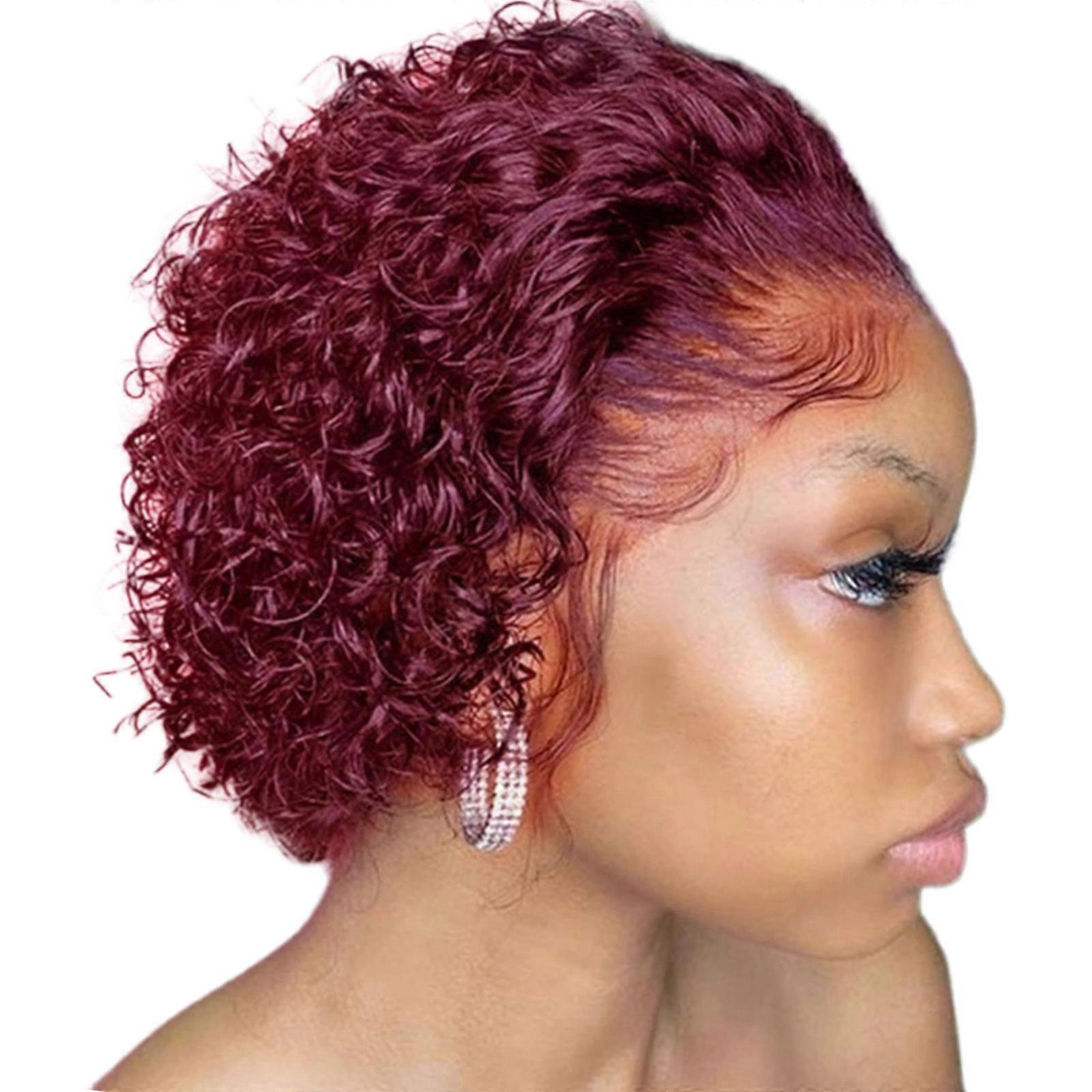 Easy Wear Short Curly Synthetic Hairpiece Heat Resistant Fiber Lightweight Natural Curls For Women Claret