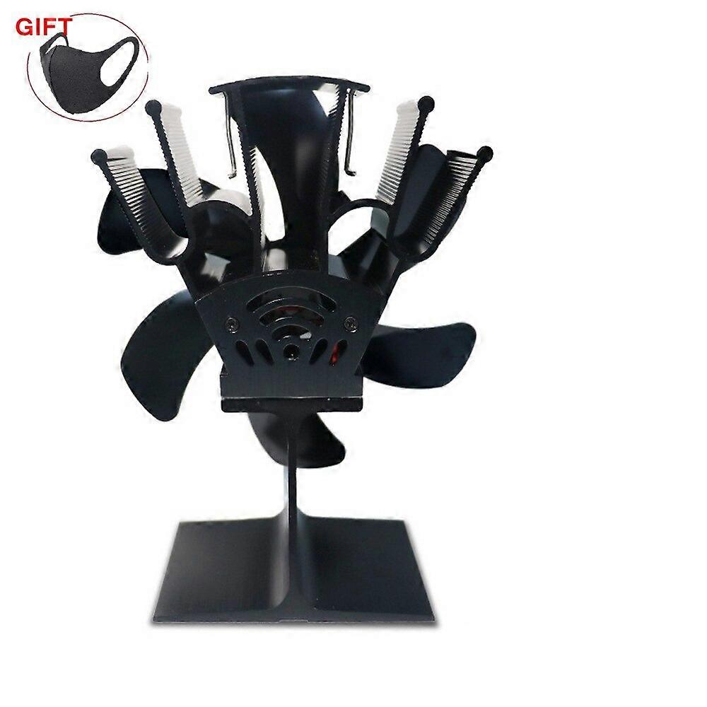 Black Fireplace 6 Blades Thermal Stove Fan Log Wood Burner Ecofan Quiet Household Fireplace Fan Effi Efficient Heat Dissipation