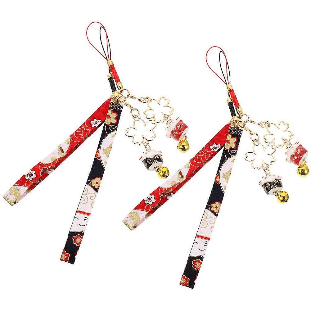 Fortune Cat Phone Charm Cat Bell Mobile Phone Charms Fashion Accessory Black 4Pcs
