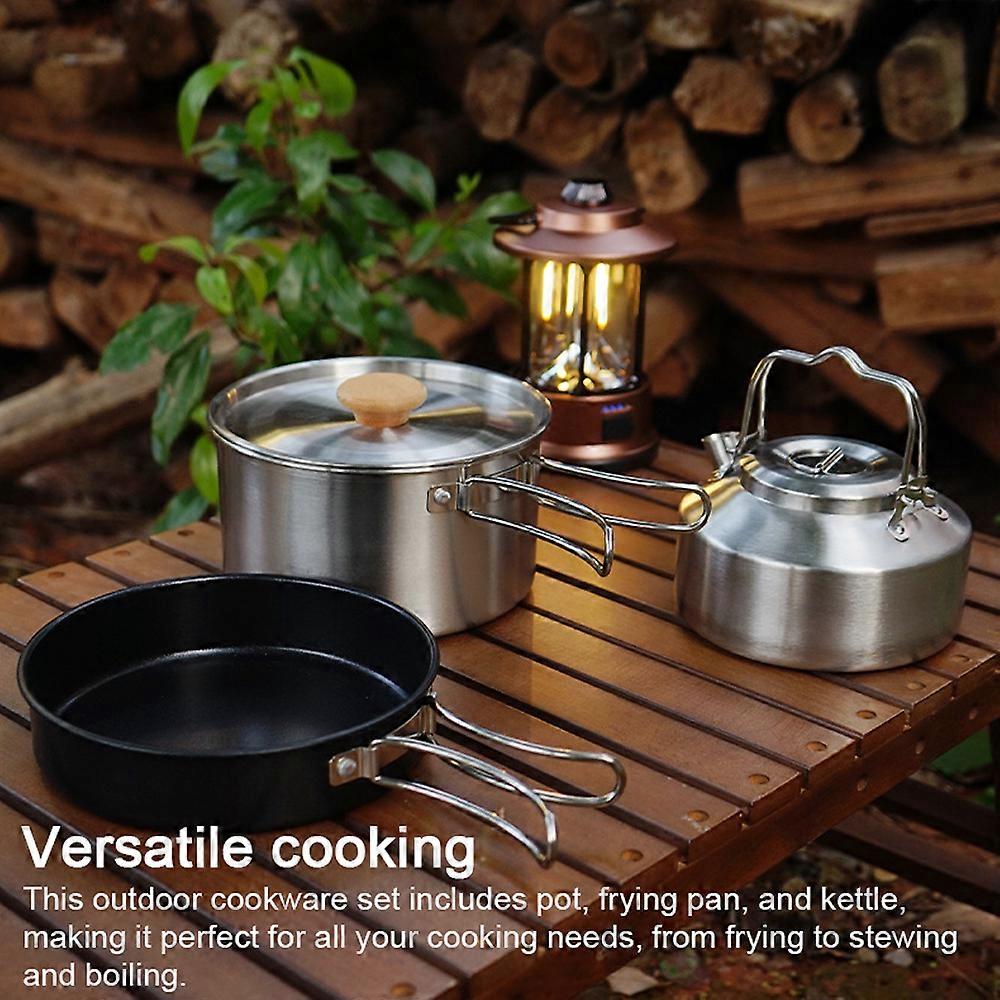 Versatile cooking: This outdoor cookware set includes pot, frying pan, and kettle, making it perfect for all your cooking needs, from frying to stewing and boiling.