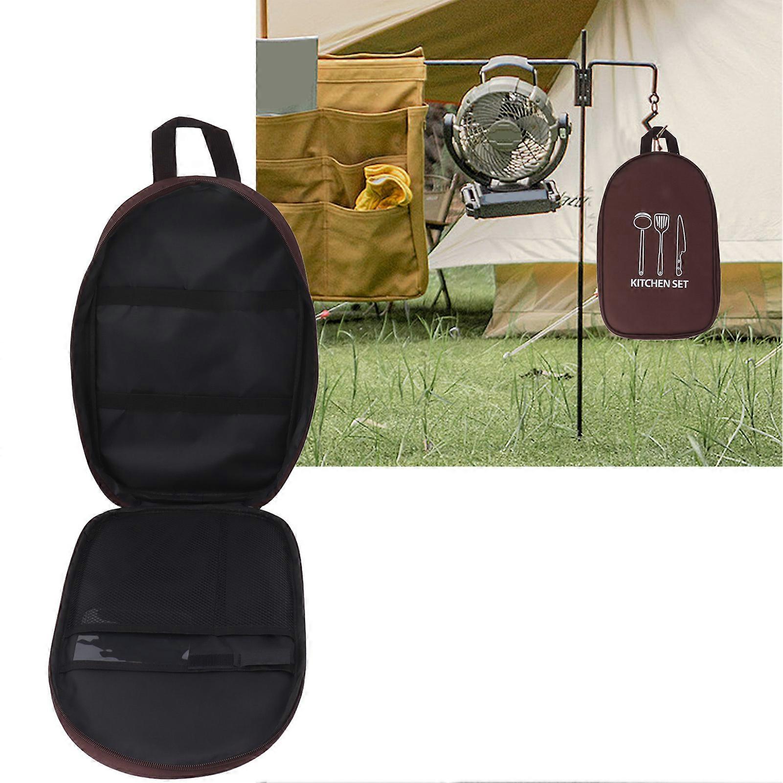 Camping Travel Cooking Utensils Bag Travel Cookware Pouch Bag with Handle for BBQ Camp Cookware Kitchen Kit Brown