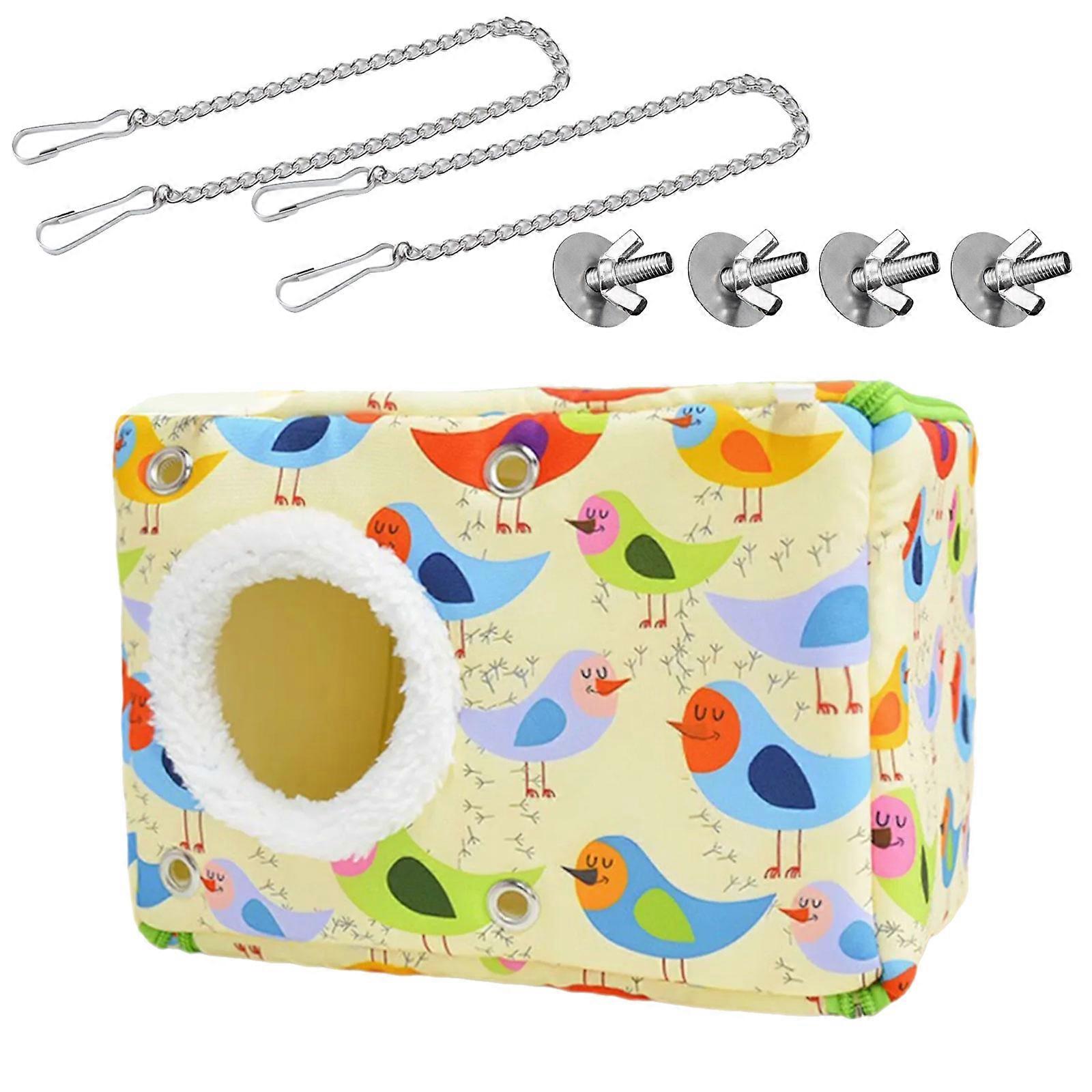 Cartoon Pattern Bird Cage Nest Thickened Warm Bedding Plush Liner Hanging Hammock Bed For Pet Parrots Chew Resistant S