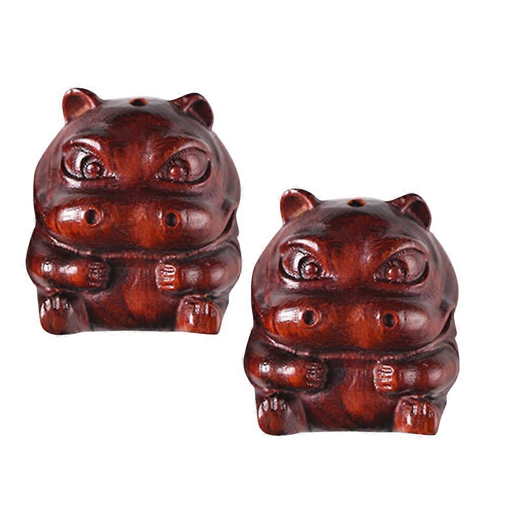 Cute Wooden Hippo Charm for Decoration Dark Brown Key Chain Pendant Versatile Craft Supplies 2 Pieces