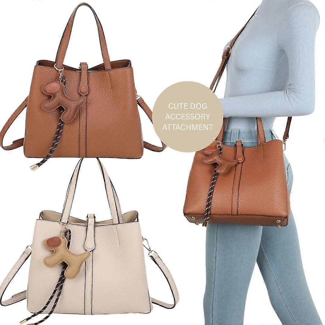 Dog Charm Faux Leather Grab Shoulder Bag Detachable Strap Multi-Compartment Ladies Handbag 22 10 28 cm