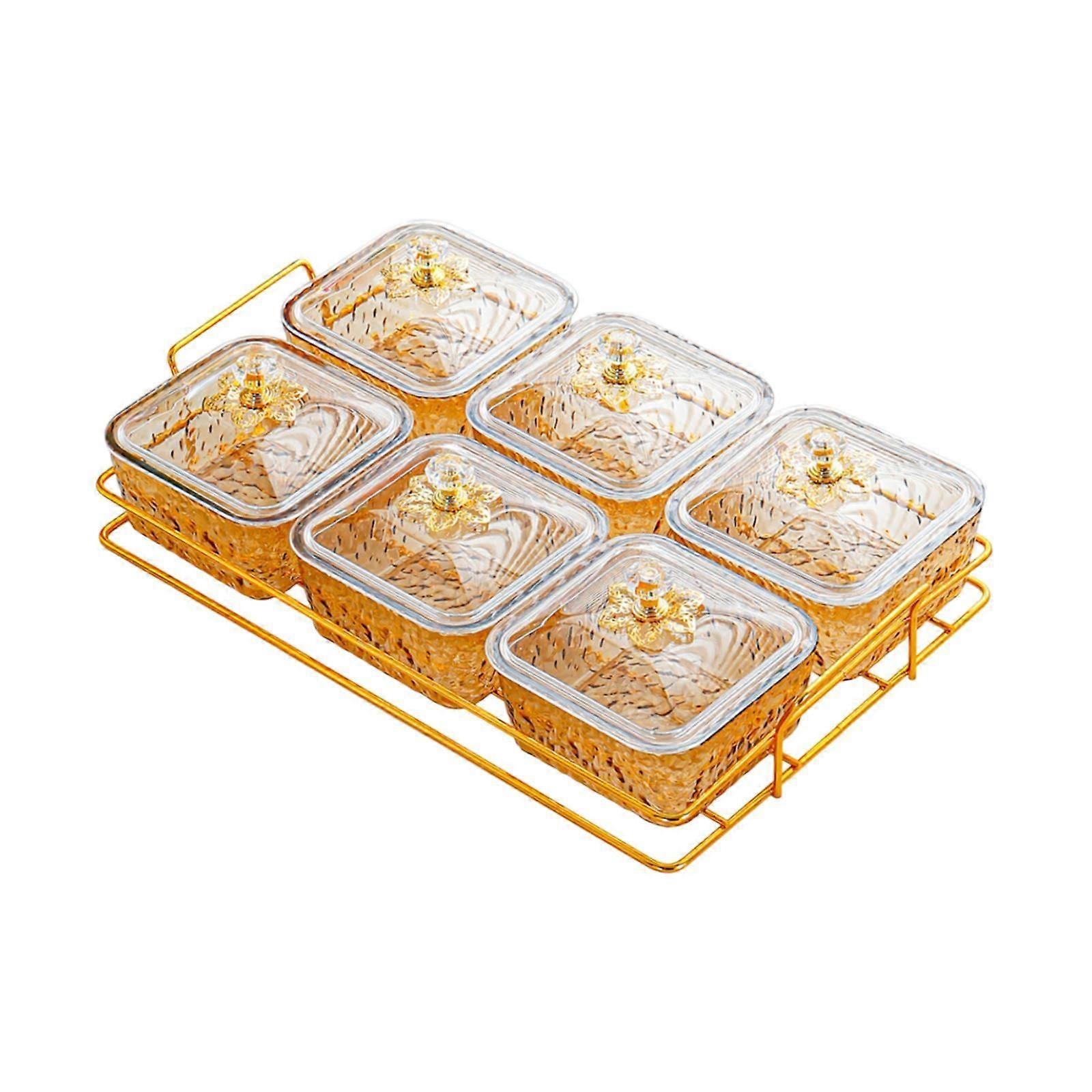 Serving Bowls with Lid and Metal Rack Dried Fruit Tray for Chips Dried Fruit Gold
