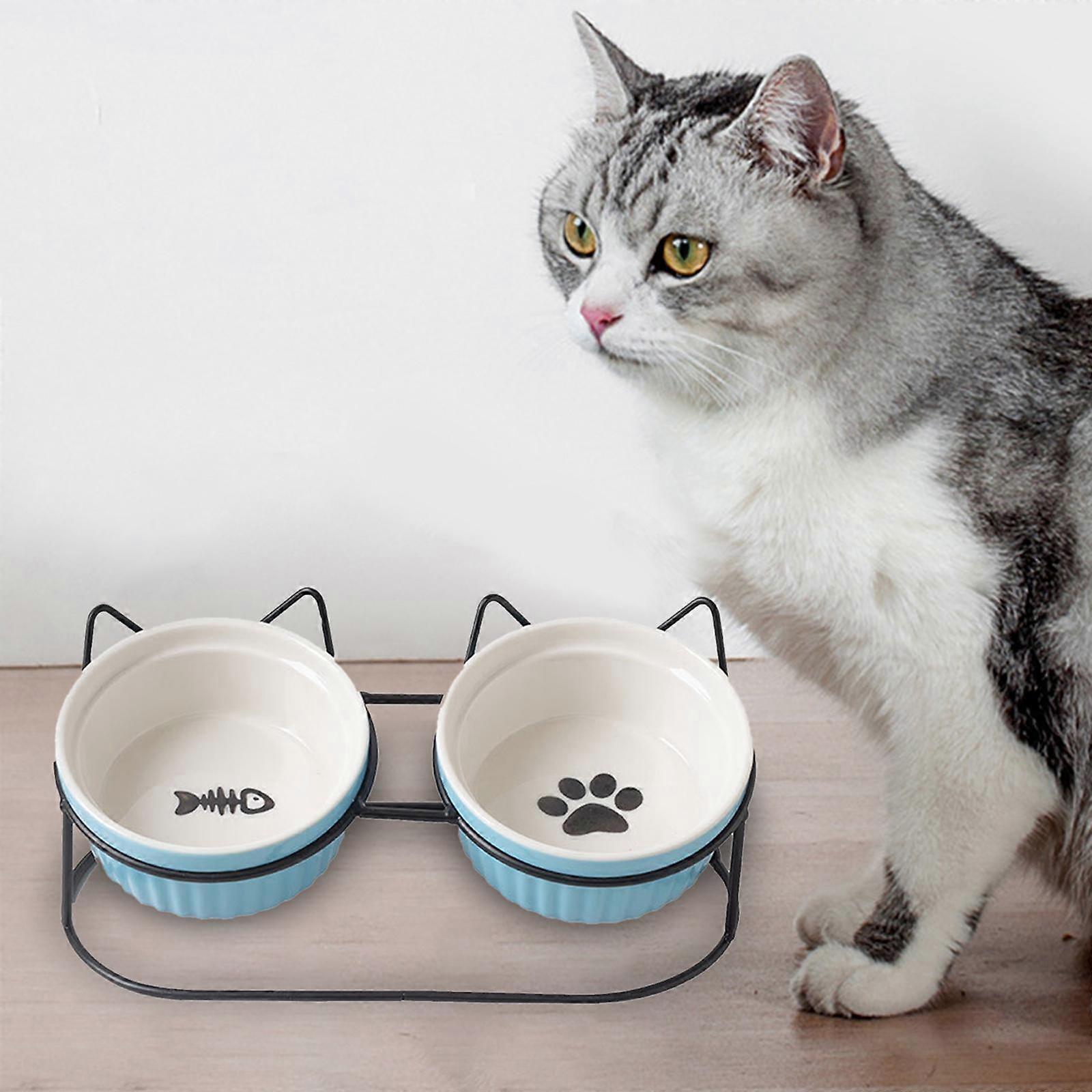 Cat Bowls Raised Stand Neck Protector Double Elevated for Pet Ceramic Bowl
