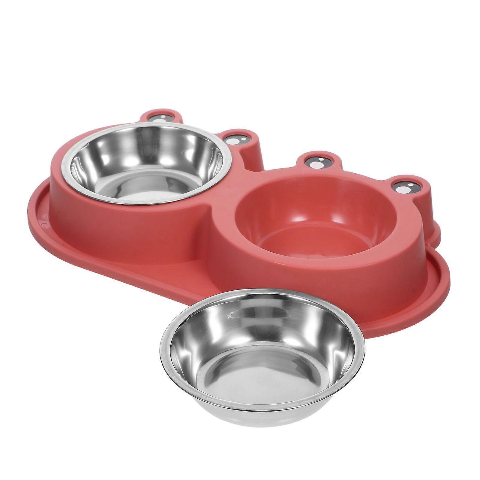 Double Dog Food Bowls: Double Cat Bowl Puppy Feeder for Food and Water - Stainless Steel Pet Feeder with Plastic Base for Small to Medium Animals No S