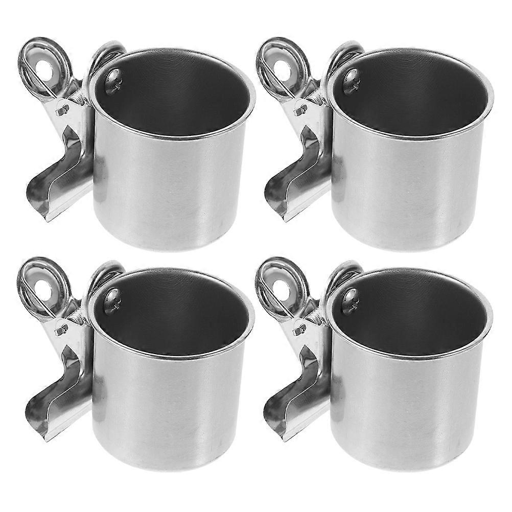 Food Water Bowls Bird Feeder Stainless Steel Cups with Clamp 20Pcs