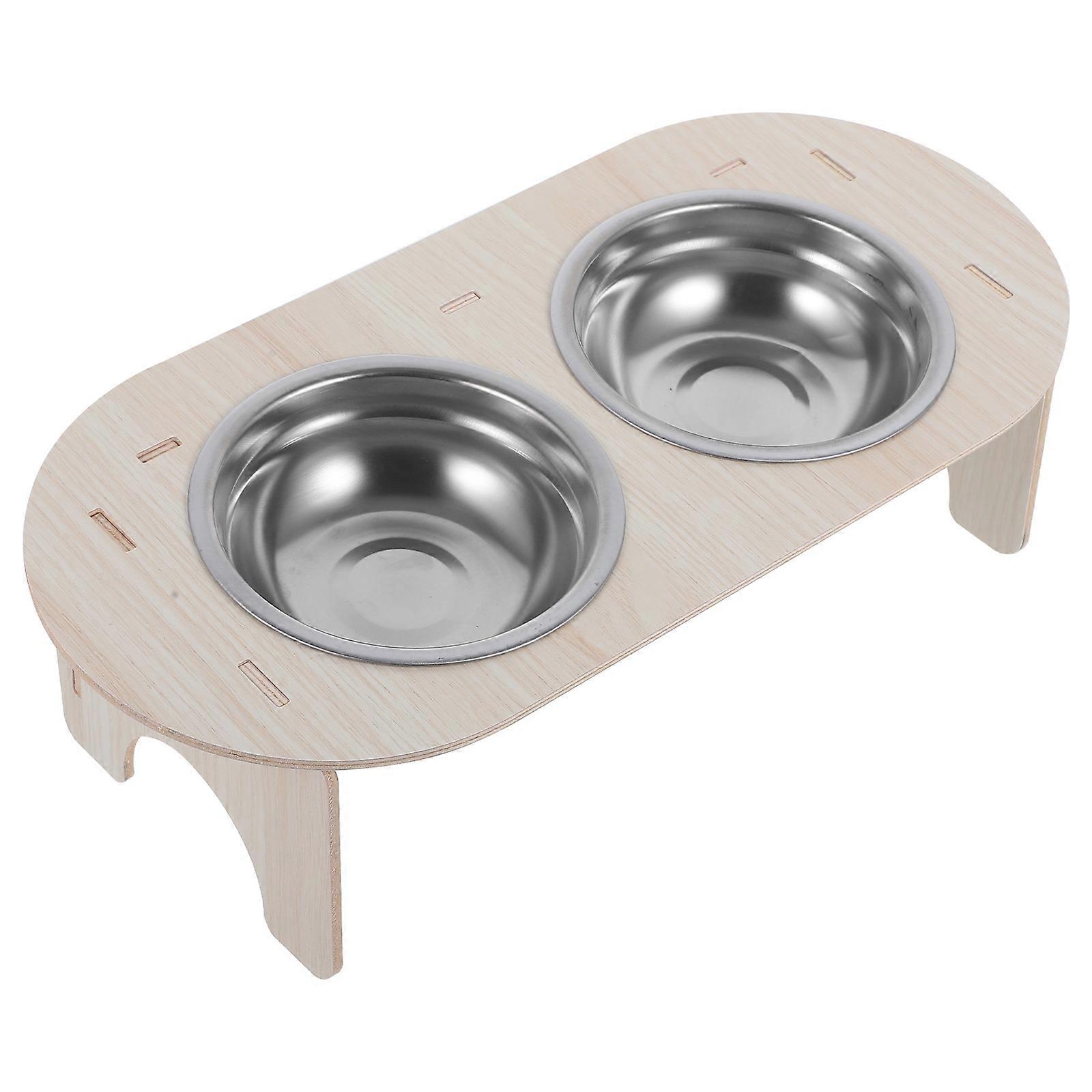 Stainless Steel Cat Food Bowl for Storage 1Set with Elevated Wood Stand