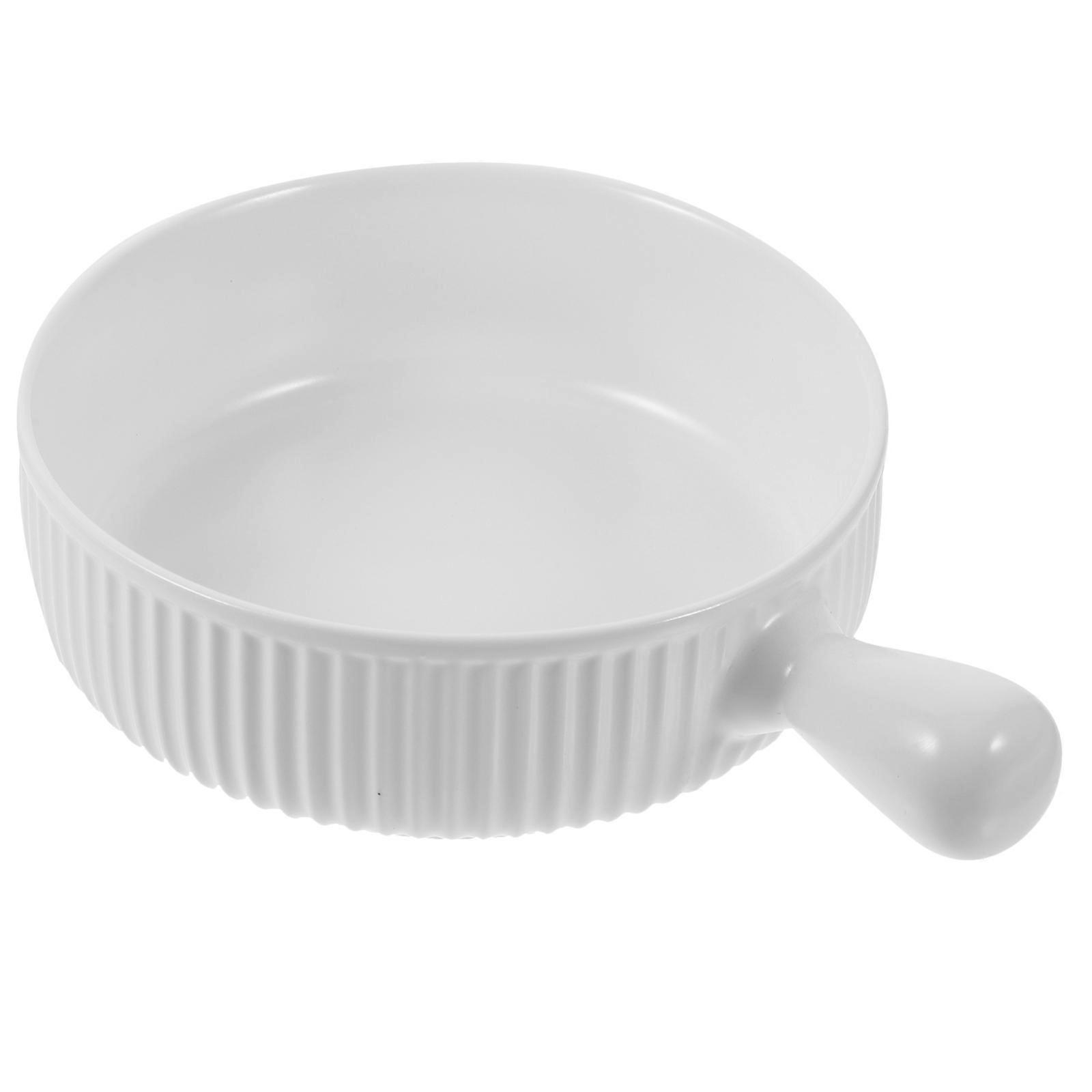 Ceramic Baking Bowl Handheld Cooking Bowl 8.02X6.09X6.09in Cream Round Handle Dishwasher Safe 1Pack