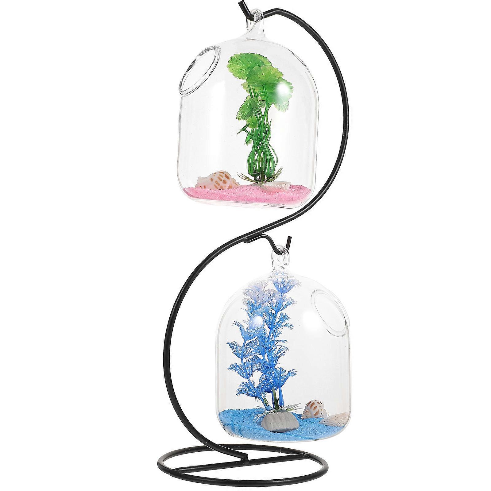 Fish Bowl with Iron Stand for Home 3Sets Hanging Glass Fish Tank