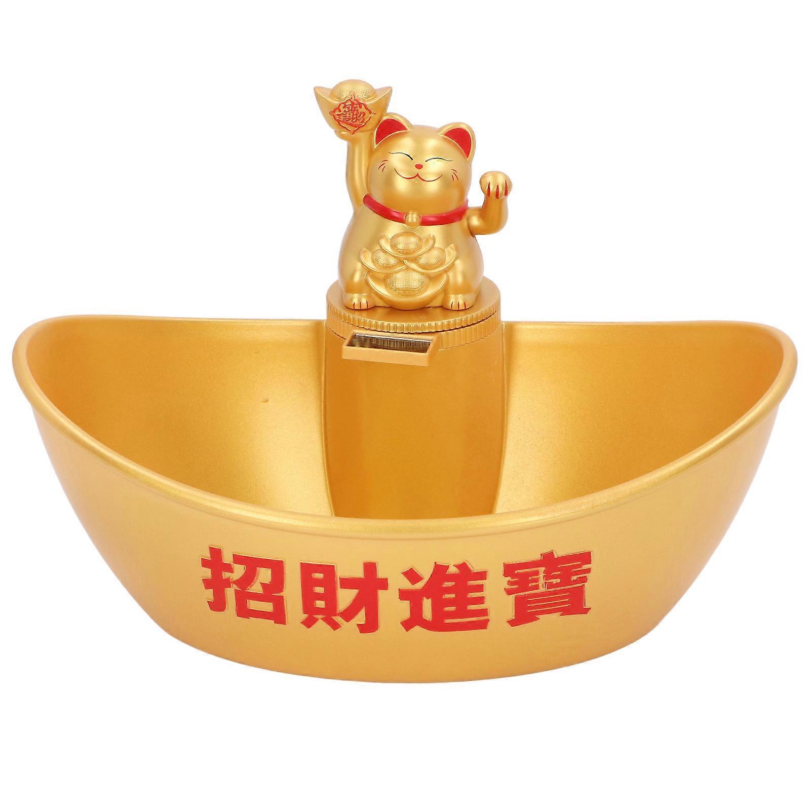 Candy Serving Bowl Waving Arm Fortune Cat Chinese Feng Shui Yuanbao Rotation Solar Panel Dish Decor for Shop