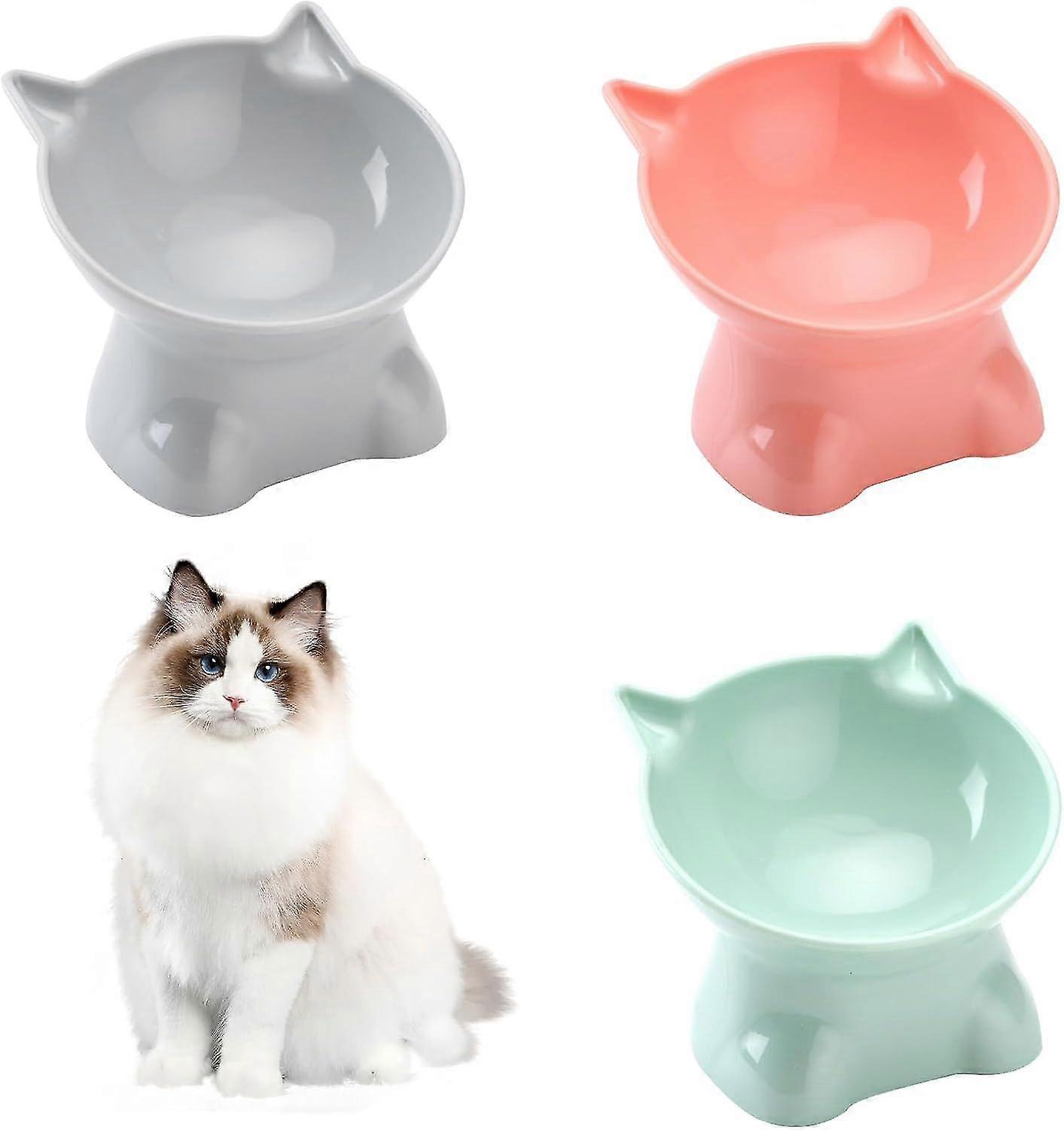 Cat Bowl, Elevated Cat Feeding Bowls with Stand Tilted, Anti Vomit Cat Food Bowl Feeding Water Bowl Cat Dishes 15 Tilted Raised Cat Feeder
