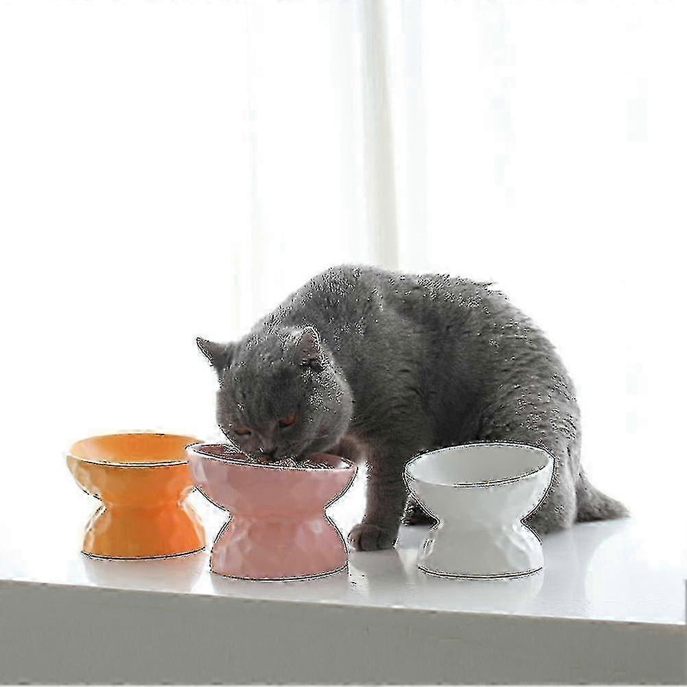 2025 Ceramic cat bowl with high foot and slanted mouth to protect cervical spine, cat food bowl with anti overturning function, water bowl, pet produc