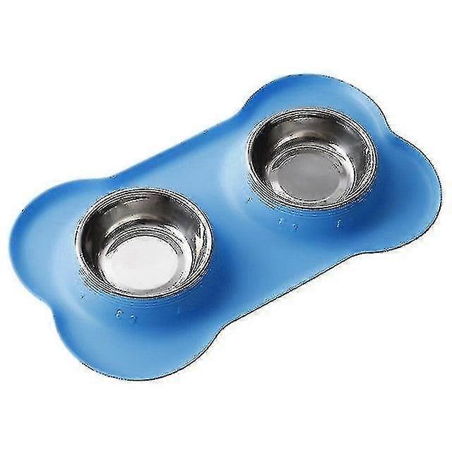 Antislip Double Dog Bowl With Silicone Mat Durable Stainless Steel Water Food Feeder Pet Feeding Drinking Bowls For Dogs Cats