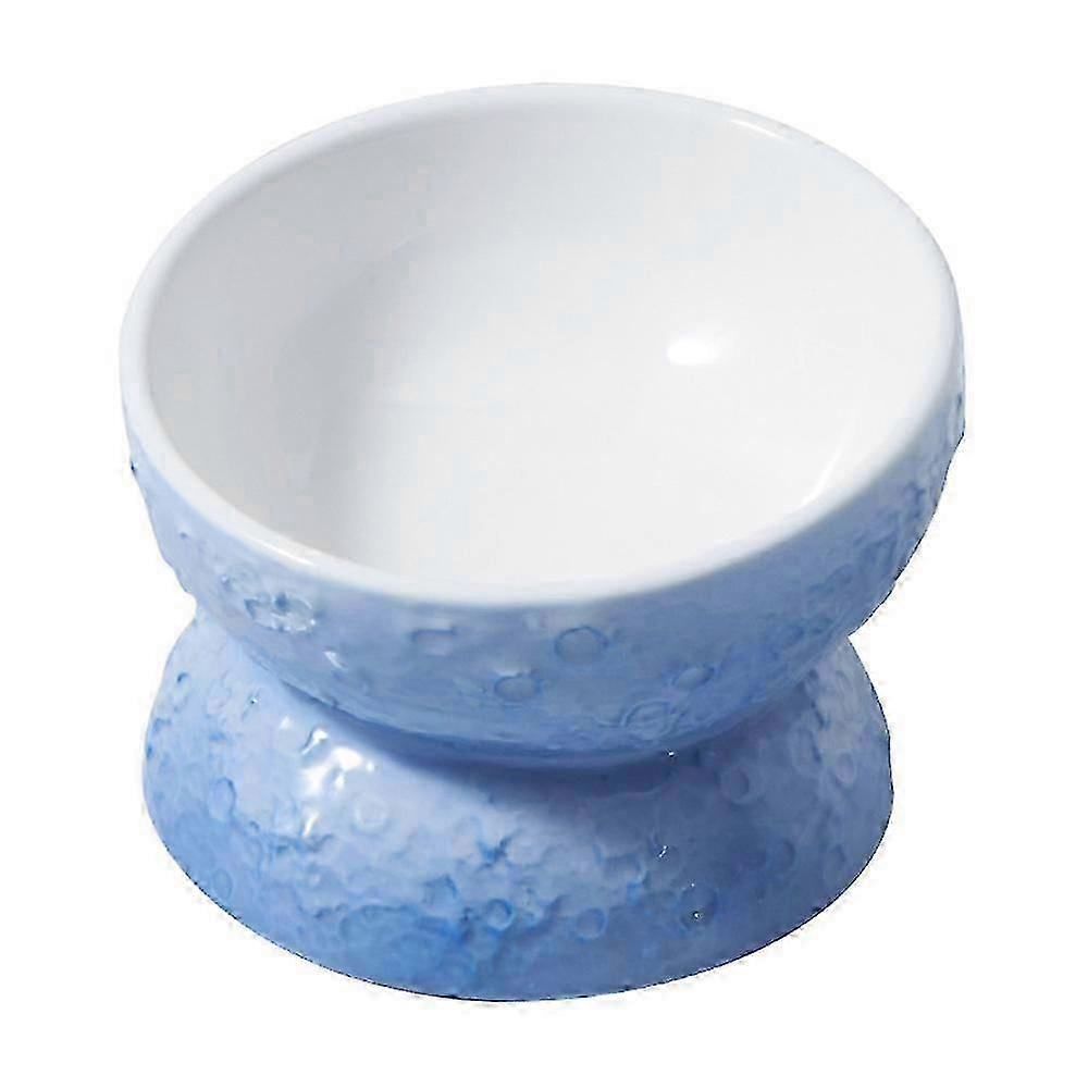 Raised Cat Dog Bowl, 15° Inclined Pet Dish, Anti-Vomit & Whisker Fatigue Feeder, Hand-Painted Ceramic Bowl for Small Pets