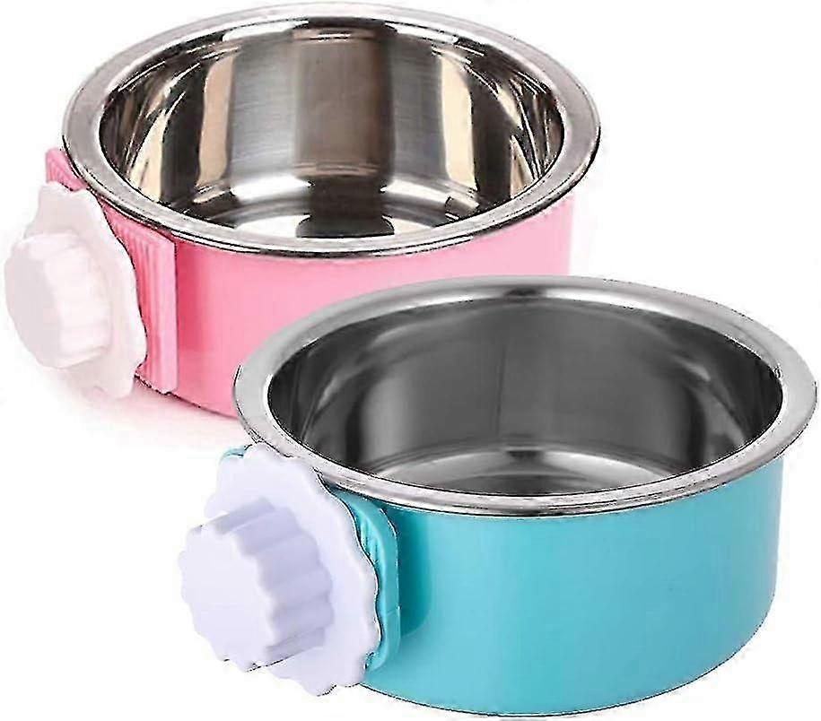 Stainless Steel Removable Pet Food Bowl, Anti-overturn Water Feeder Container, Suitable for Small Dog/Cat/Rabbit, 2 Set of Crate Bowls