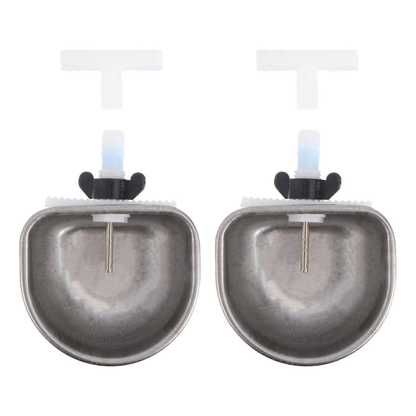 These water feeders are made of quality material, and safe, and do not hold bad or to keep pets safer when you use. The bird feeders are fixed with the cages, which can be used for hold food or water, your bird from accidentally tipping food and water bowl. Features - Color: Silver. - Material: Stainless steel and plastic. - Size: 6.70X6.70X2.90cm/2.63X2.63X1.14inch. - The connection is split tee style. - Made of material, durable for use. Wonderful gifts for friends and family who keep pets. - Large capacity feeders are enough to meet your using needs. - These water bowls can be easily installed to any height on the cage and is very easy to adjust. - Easy installation design to ensure continuous food or water supply - Fast installation in 3 seconds, directly of the cage wire. Package list: 2 x Sets of Water Feeders
