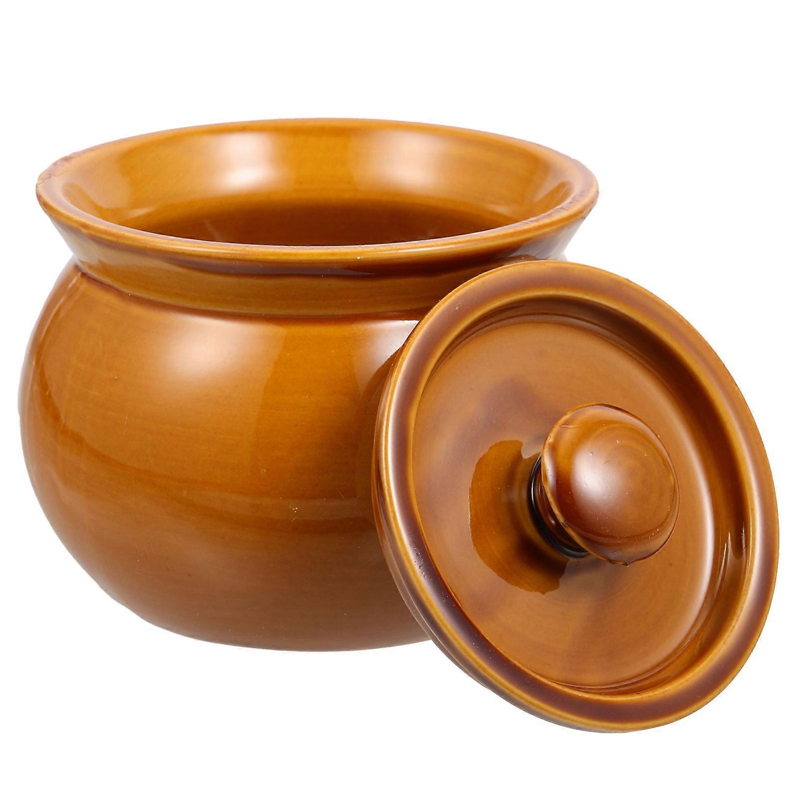 Brown Ceramic Soup Bowl for Home Kitchen Use 5Pcs Stewing Pot