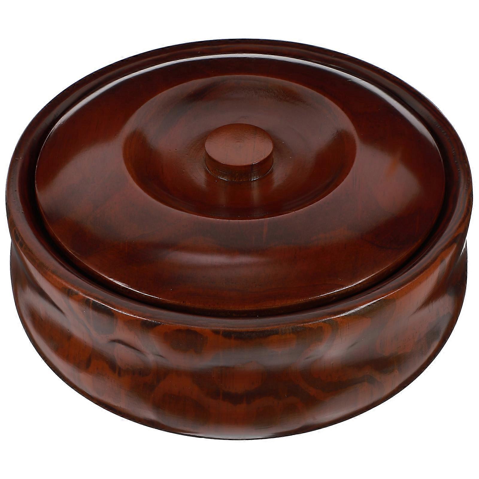 Wooden Fruits Bowl Snacks Holder Bowl with the Cover Simple Retro Fruits Bowl for Home Store (22-23x7.5cm Coffee)
