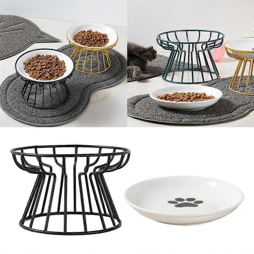 Ceramic Pet Bowl Iron Holder Shelf Stand Pet Single Bowl Feeding Food Bowls