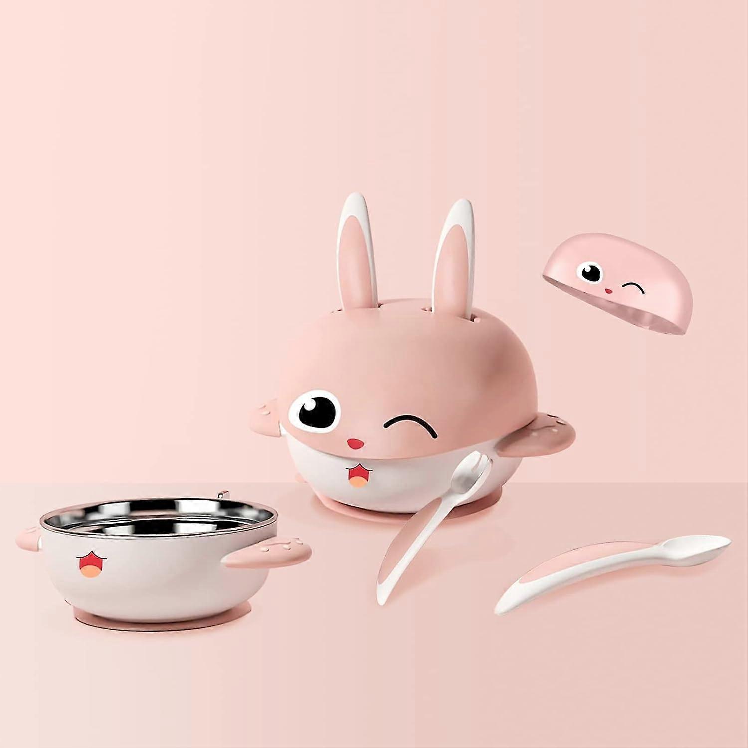 Stainless Steel Baby Bowl with Suction Cup Base, Suction Cup Silicone Baby Feeding Set (pink)