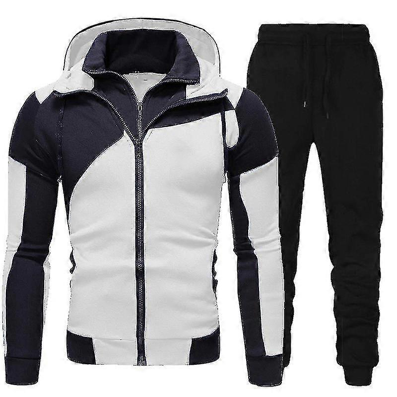 Hoodie Patchwork Zip Sweatshirt Sweatpants Set Casual Sports Long Sleeve Sweatshirt Sweatpants