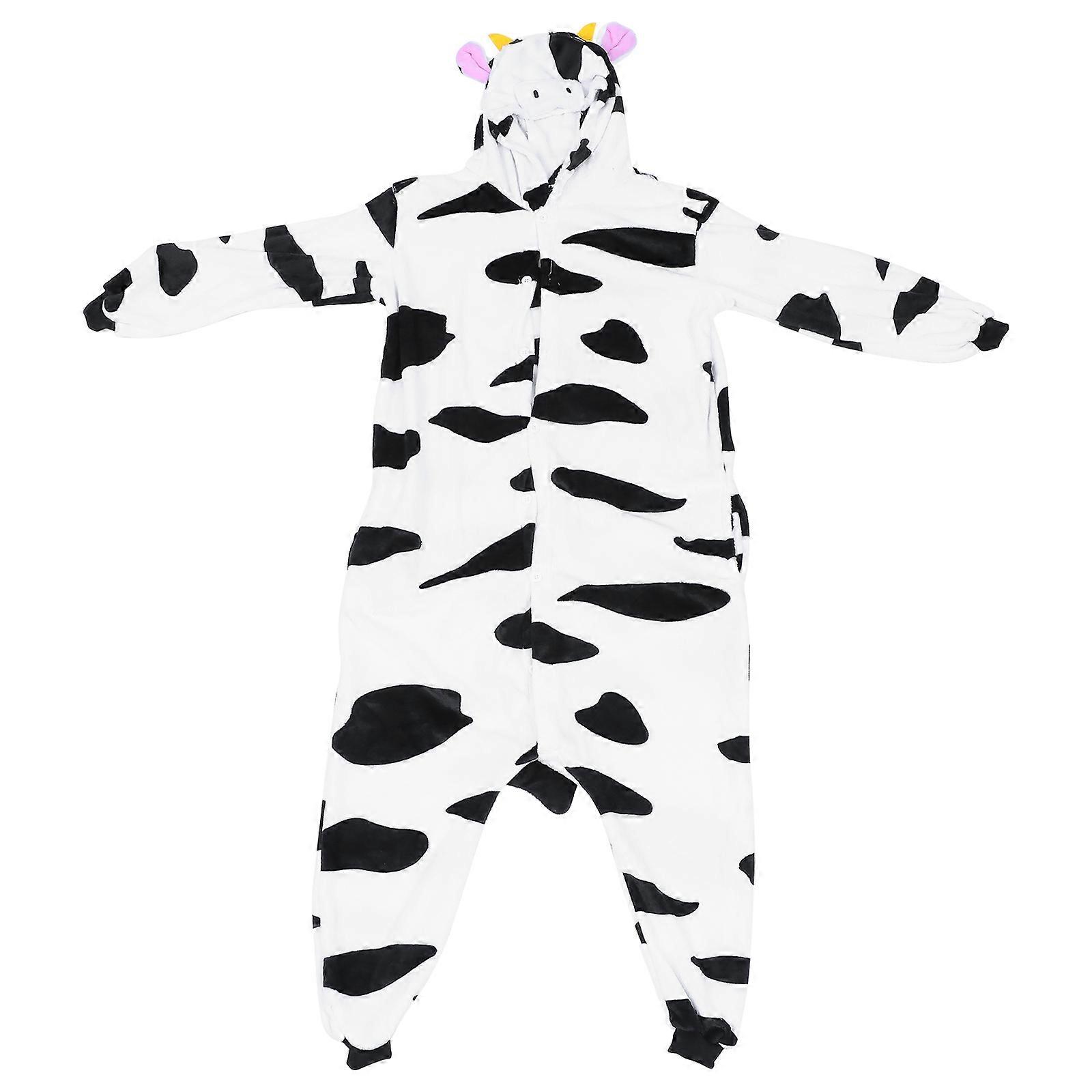 Flannel Night Hoodie Cartoon Cow Jumpsuit for Kids 1Pcs Comfy Homewear