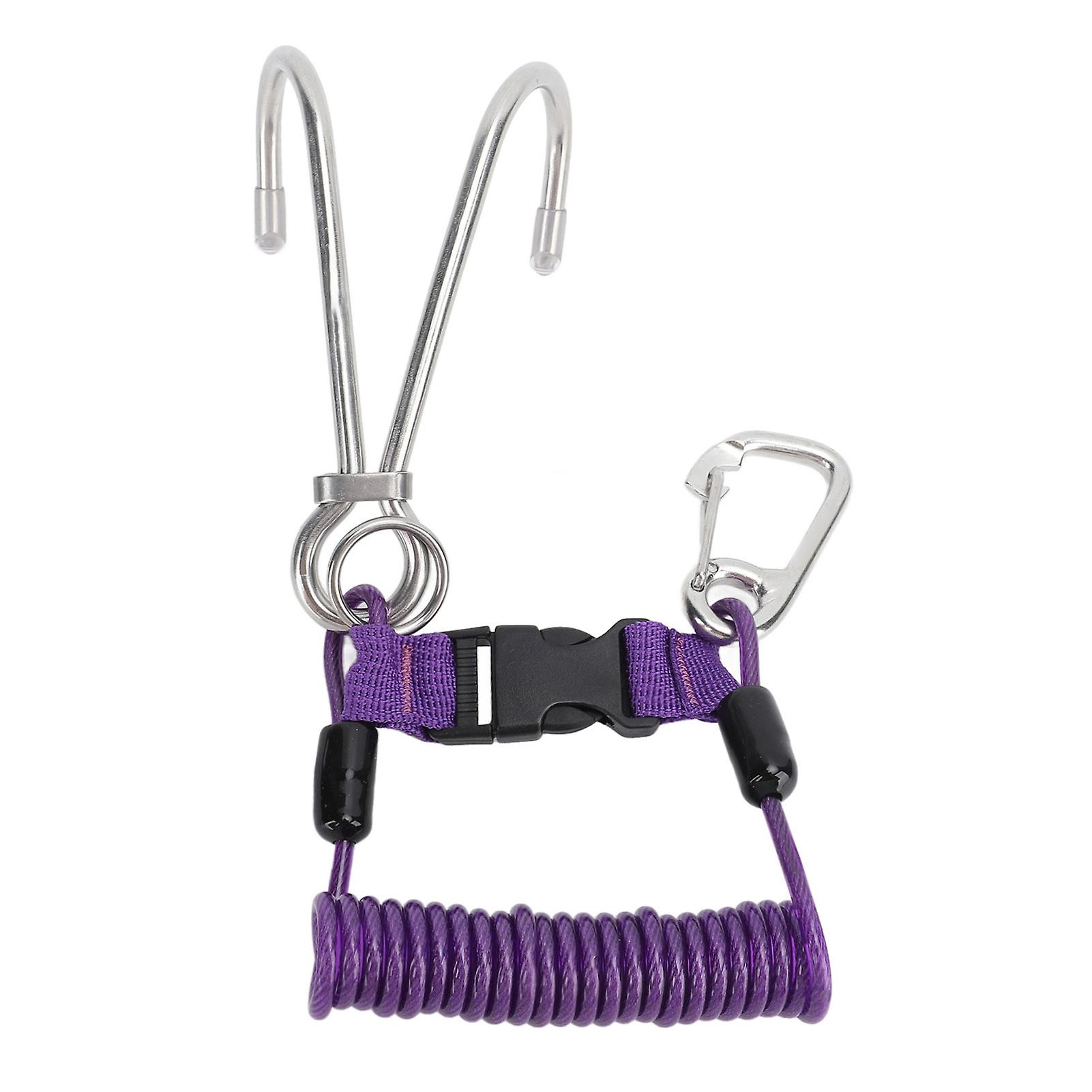 Spring Coiled Diving Hook Stainless Steel Double End Snap Clip with Quick Release Buckle Diving Accessories Purple