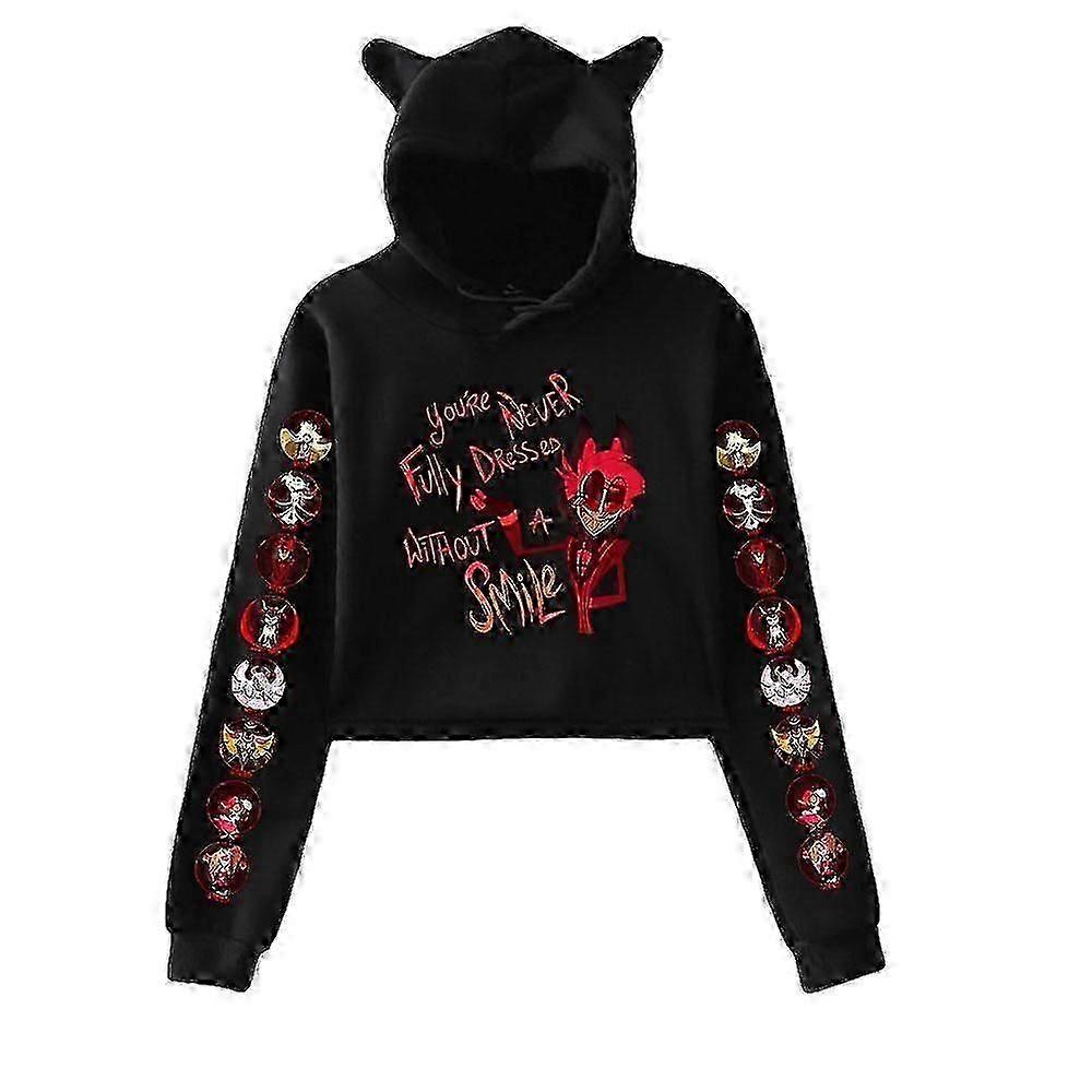 Short Hoodies Women Hazbin Hotel Lady Sweatshirt Tracksuit Long Sleeve Female Cropped Top Fashion Korean Clothes Harajuku