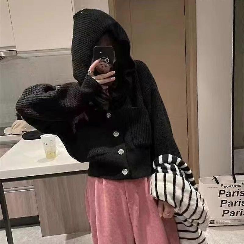 Cardigan Sweater Hooded Unique Soft Glutinous Sweater Coat Women Spring and Autumn Gentle Loose Versatile Wool Cardigan Female