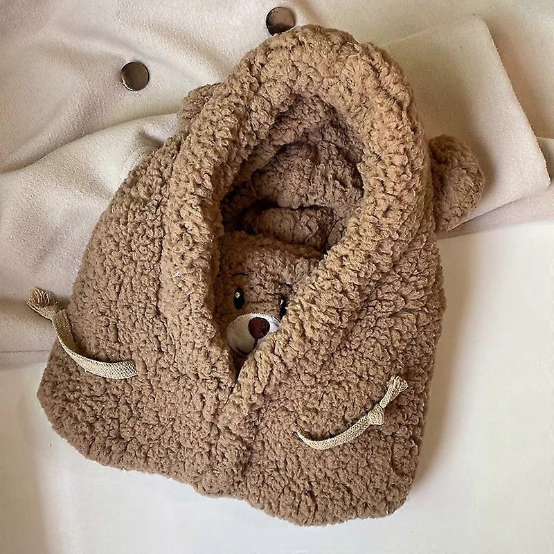 Cartoon Bear Ear Lamb Beanie Hat With Mask Warm Balaclava Winter Thickened Ear Protection Autumn Skullies Beanies for Women Girl