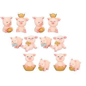 קריקטורה בעלי חיים מיני פסלונים בצורת חזיר שרף מיניאטורי פסל חדר שינה תפאורה 12 יחידות