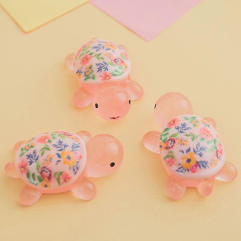 Cartoon Luminous Turtle Flower Printing Turtle Diy Ornament Glow-In-The-Dark Resin Accessories Aquarium Fish Tank Miniature