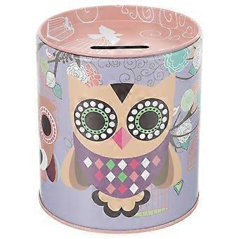 Cartoon Piggy Bank Owl Pattern Coin Container Kids Money Bank Tinplate Coin Jar