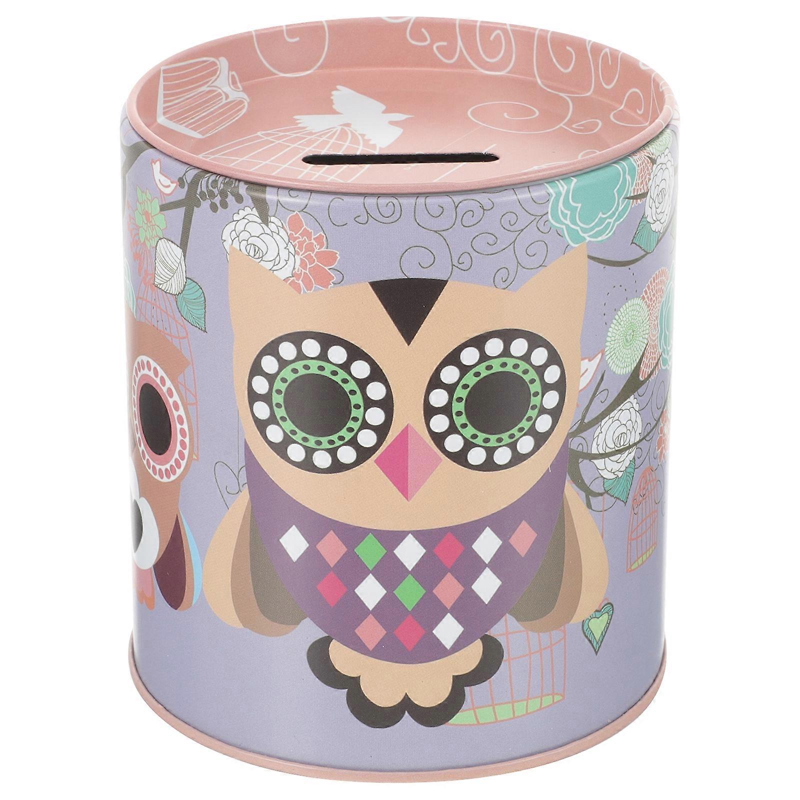 Cartoon Piggy Bank Owl Pattern Coin Container Kids Money Bank Tinplate Coin Jar