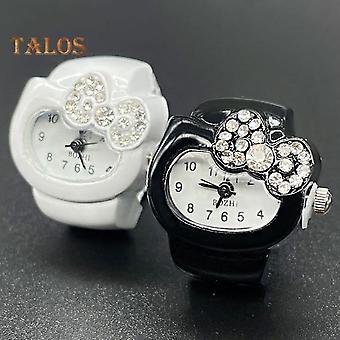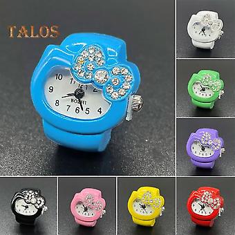 Introducing the finger watch, a stylish and versatile accessory that adds a touch of charm to your everyday look. Available in multiple colors, this watch features a cute cat shape ring design that is both trendy and adorable. The elastic strap can be easily adjusted for a comfortable fit, making it suitable for daily wear, parties, school, family gatherings, and casual outings. Crafted with a stainless steel strap and a high-quality glass dial, this watch showcases fine workmanship and durability. Elevate your style with this fashionable finger watch that effortlessly combines functionality and fashion.