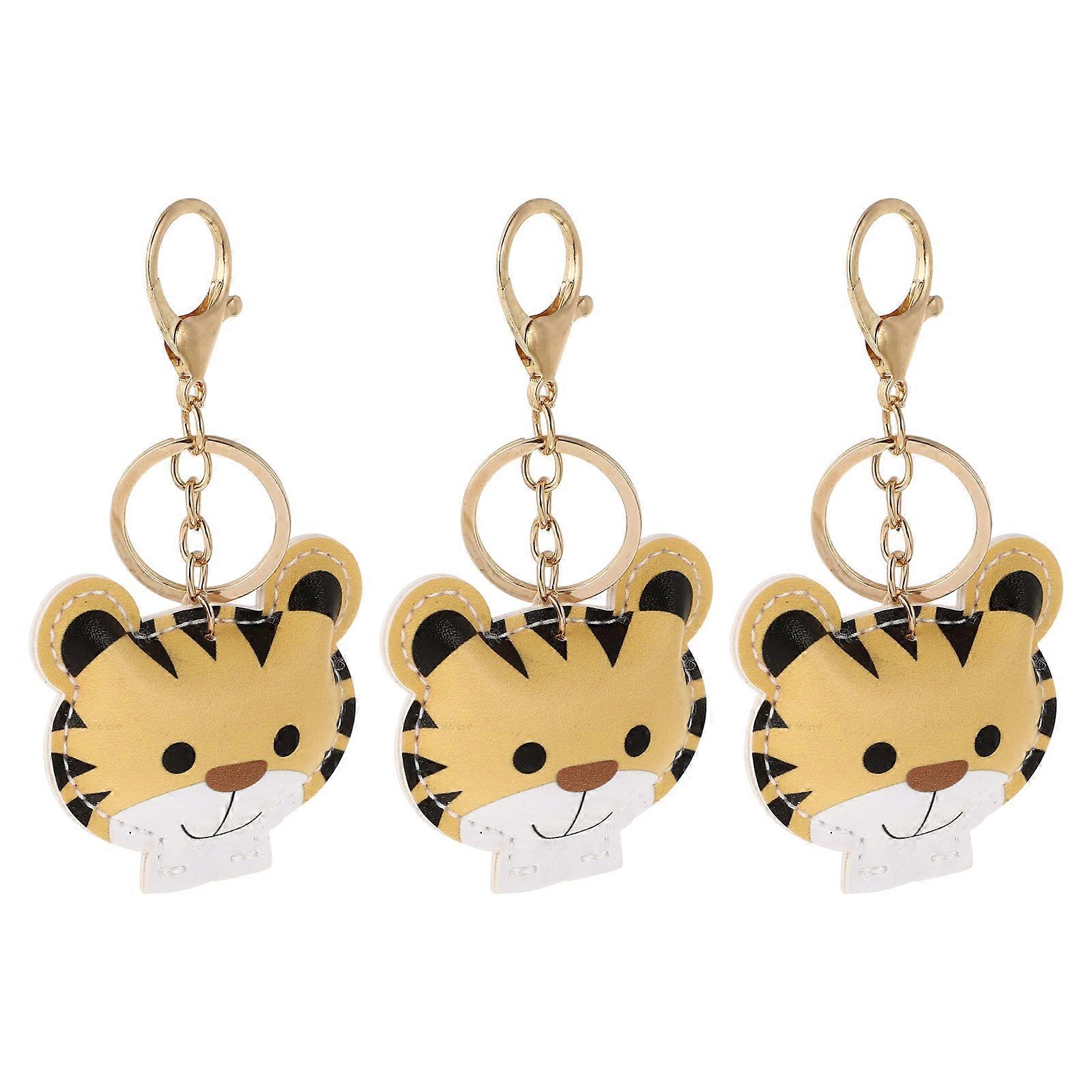 Cartoon Tiger Key Chain Keyring Pendants For Daily Use Durable Yellow 10.00X6.00X1.00CM 3Pcs