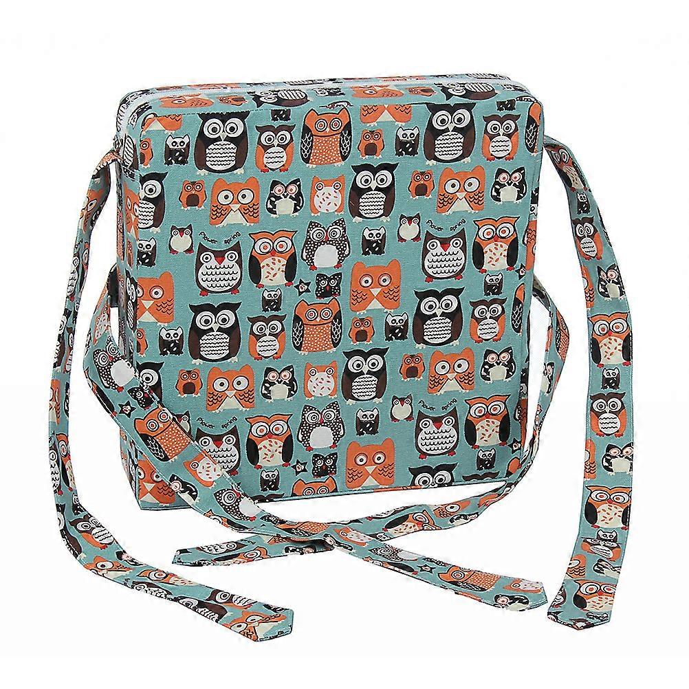 Cartoon Owl Printing Chair Increasing Cushion Baby Toddler Kids Portable Dismountable Highchair Booster Cushion Washable Chair Seat with Strap (Green)