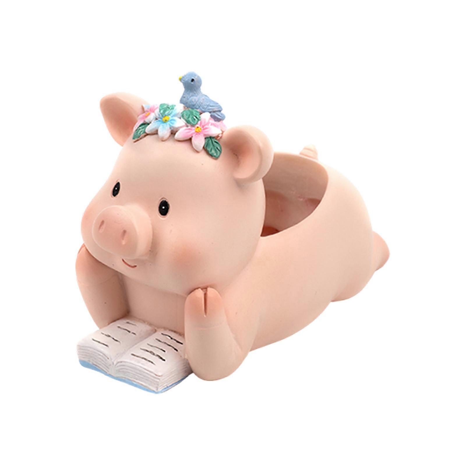 Cartoon Mini Pig Resin Flowerpot for Succulent Plants with Drainage Holes, Cute Decorations for Desk, Balcony, and Home